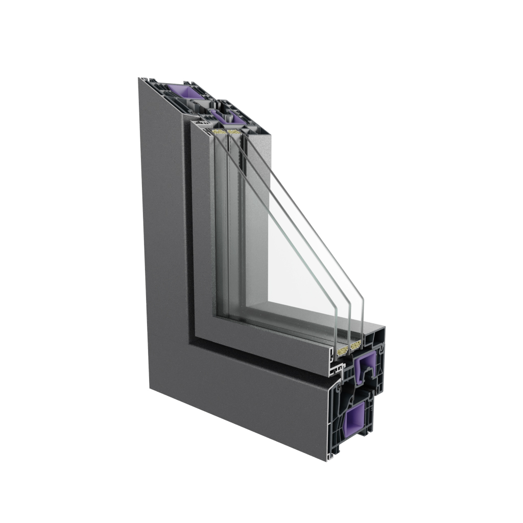 Serie (categoría de sistemas de 80-90 mm), unidad de doble acristalamiento encolada de 48 mm, ancho de sección de la hoja de 100 mm, profundidad de instalación del marco de 82 mm